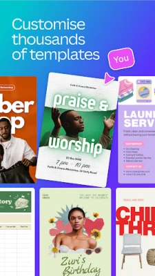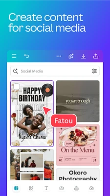 Don gabatarwa da bukukuwa, Canva ta samar da kayan aiki na musamman. Yi amfani da mai ƙera gabatarwa don ƙirƙirar nunin faifai masu jan hankali don aiki ko makaranta, har ma da damar haɗin gwiwa kai tsaye. Kuma don gayyata, za ka iya tsara gayyatar aure, ranar haihuwa, ko wani biki mai muhimmanci, da dubban samfura masu yawa da za a iya keɓancewa don bugawa ko raba su a kafofin sada zumunta. Hakanan, ƙirƙirar hotunan Instagram, murfin Facebook, da hotunan YouTube masu kayatarwa don kafofin sada zumunta. Canva tana tattara duk kayan aikin zane-zane a wuri guda, tana mai da ƙirar tambari, gyaran bidiyo, da ƙirƙirar fosta mai sauƙi ga kowane mai ƙirƙira a Afirka, tana samar da duk abin da kake buƙata don fitar da tunaninka.