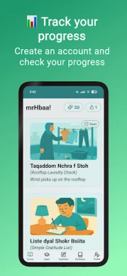 DarijApp ce mafita ga duk wanda ke son koyon Larabcin Morocco (Darija) cikin sauƙi da nishaɗi. Yana ba da gajerun labarai, waɗanda aka tsara musamman don masu farawa, tare da fassarar Turanci gefe da gefe don taimakawa fahimta. Kowane labari ya zo da sauti mai inganci, yana ba ku damar jin yadda ake furta kalmomi da jumloli yadda ya kamata daga harshen asali. Bayan haka, za ku iya gwada ilimin ku nan take tare da gajerun tambayoyin da ke tabbatar da kun fahimci abin da kuka koya, yana taimaka muku ƙarfafa abin da kuka koya a take.