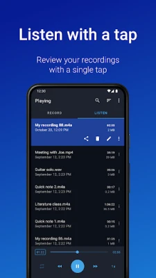 Ga masu kasuwanci, wannan manhaja ce mai muhimmanci don ɗaukar hirarru ko tarurruka daga wayarka, kwamfutarka mai hannu, ko ma daga agogon hannu mai wayo. Da zarar an yi rikodi, rabawa yana da sauƙi ta hanyar imel ko duk wata manhajar saƙonni da kake amfani da ita, tare da abokan aikinka. Don fara rikodi cikin gaggawa, "Easy Voice Recorder" yana ba da widget-s masu ƙarfi da gajerun hanyoyi waɗanda zaka iya amfani da su kai tsaye daga allon farko na na'urarka. Haka kuma, mawaƙa da duk wanda ke buƙatar kama sauti mai inganci za su ga ya zama mai amfani sosai. Yana da kyau don atisaye, kama sabbin waƙoƙi, da gwada sabbin tunani da sauri, yana ba ka damar sauraron sakamakon nan take da kuma yin gyare-gyare a sabon rikodi.